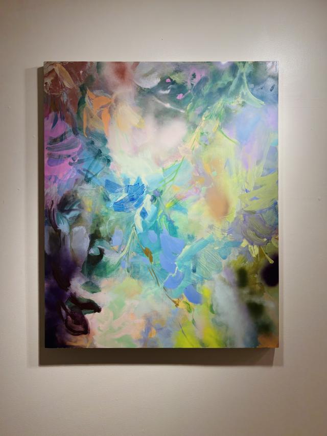 Something Extraordinary Art Exhibit February 2023 featuring colorful art work on the walls and floor of the Arnos Maris Art Gallery.